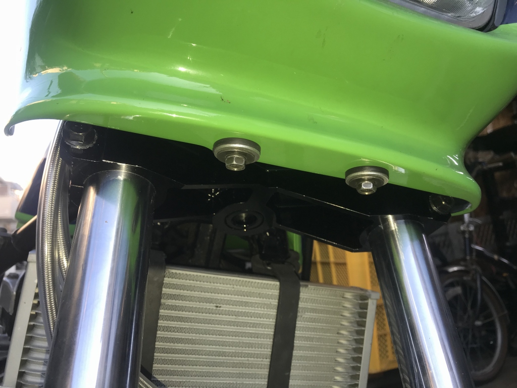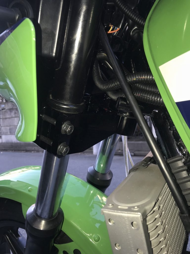 カウルステーは、スペーサーの長さを調整し、ボルトオンで付きました。