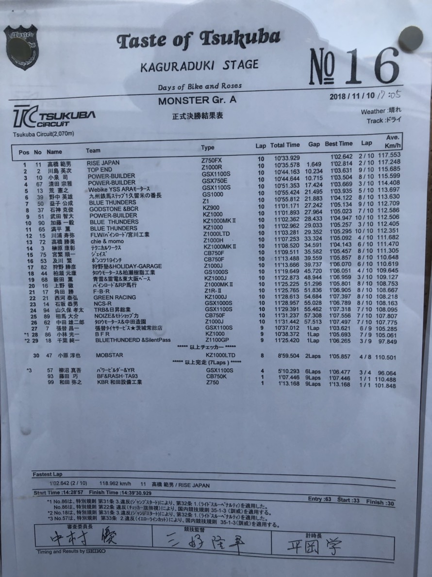 赤旗も無く、レースは無事に終わりました。