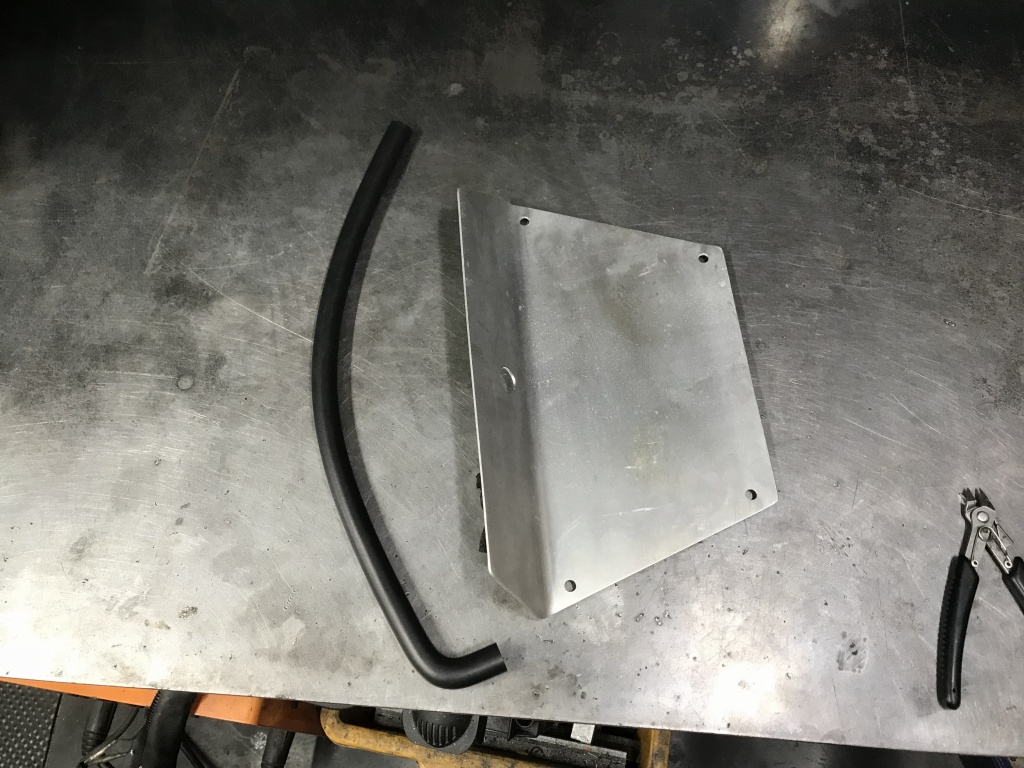先ずは、ブローバイホースの取り付け。隔壁に穴を開け、90°に曲がったホースを準備します。