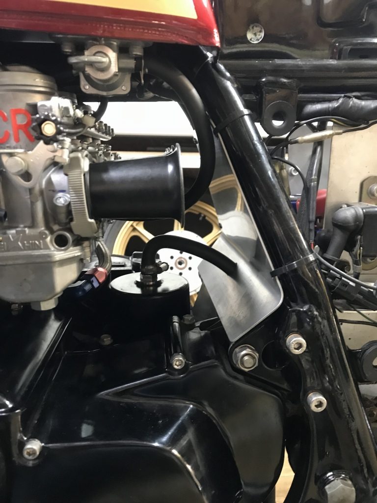 取り付けるとこんな感じです。キャブの脱着にも邪魔になりません。