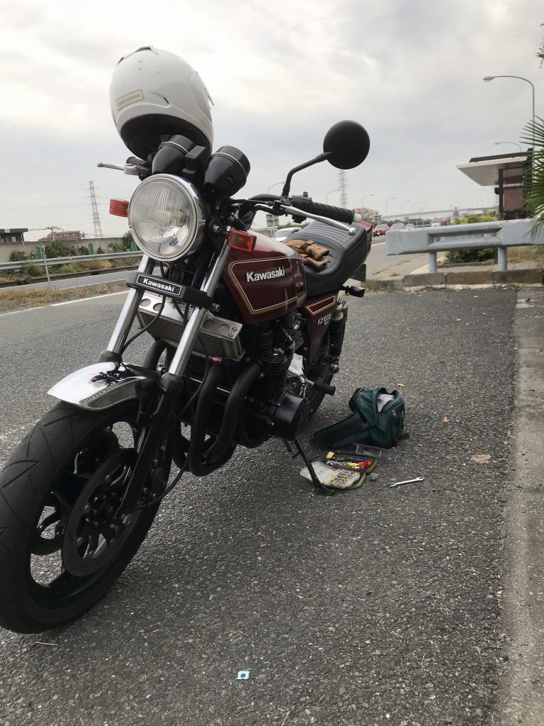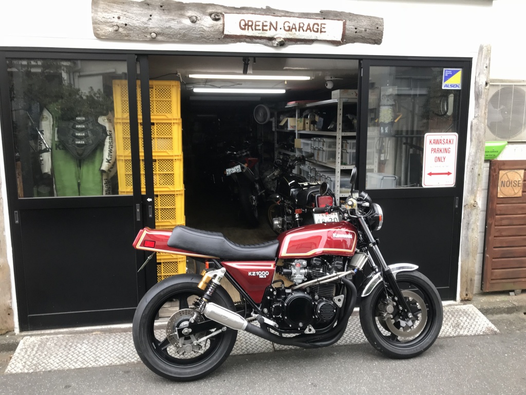 ガレージ周辺でスロットル低開度のセッティングを行います。