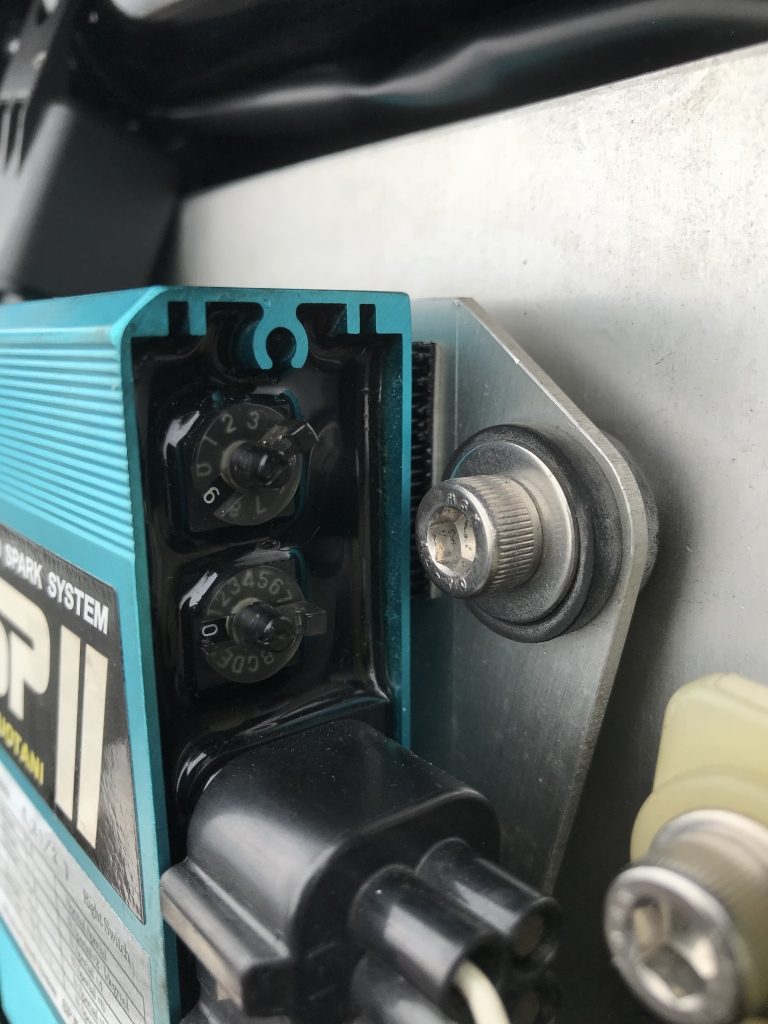 上の点火時期調整ダイヤルを標準の0から9へ変更します。これで2°遅角します。