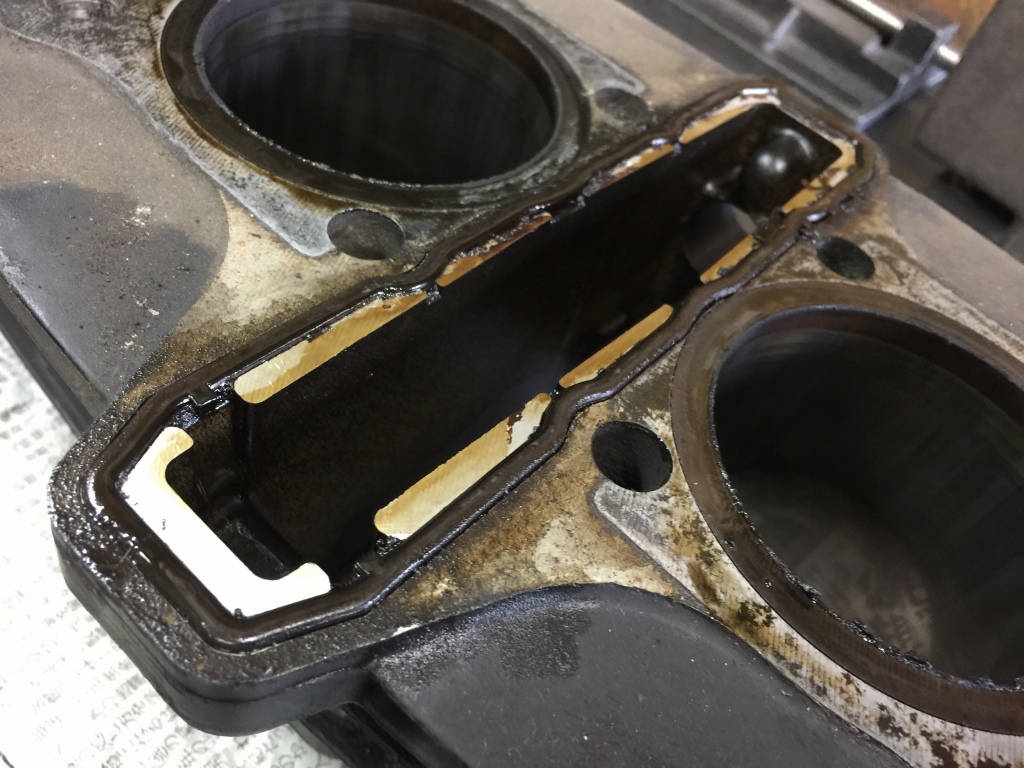 ガスケットを剥がしたら、オイルストーンで面の汚れを取り仕上げます。