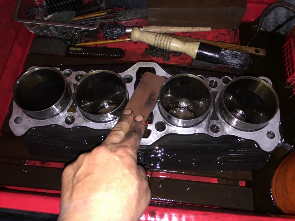 カーボンを落とし洗浄します。ピストンリングは継続使用です。