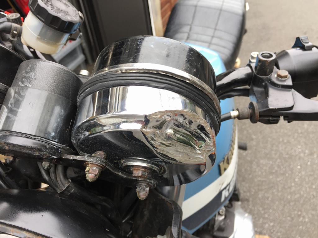 左に転倒して滑走したそうで、カバーの下側に大きくクラックが入っています。