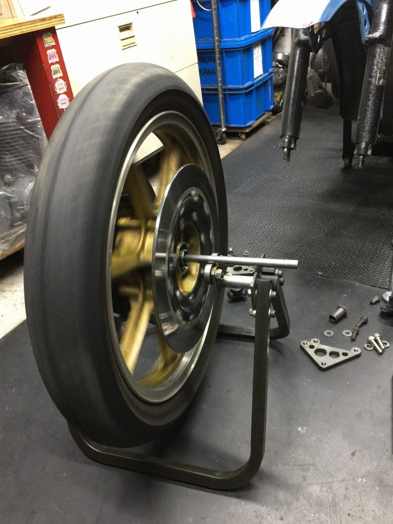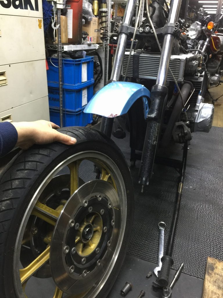 Z1100Rの純正18インチだったフロントホイールも、リムがうねうねと大きく振れていました。