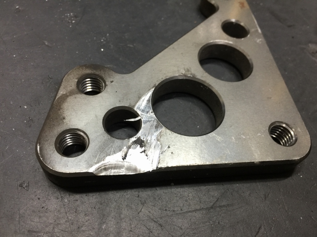 キャリパーサポートには、フローティングピンが干渉した痕があります。