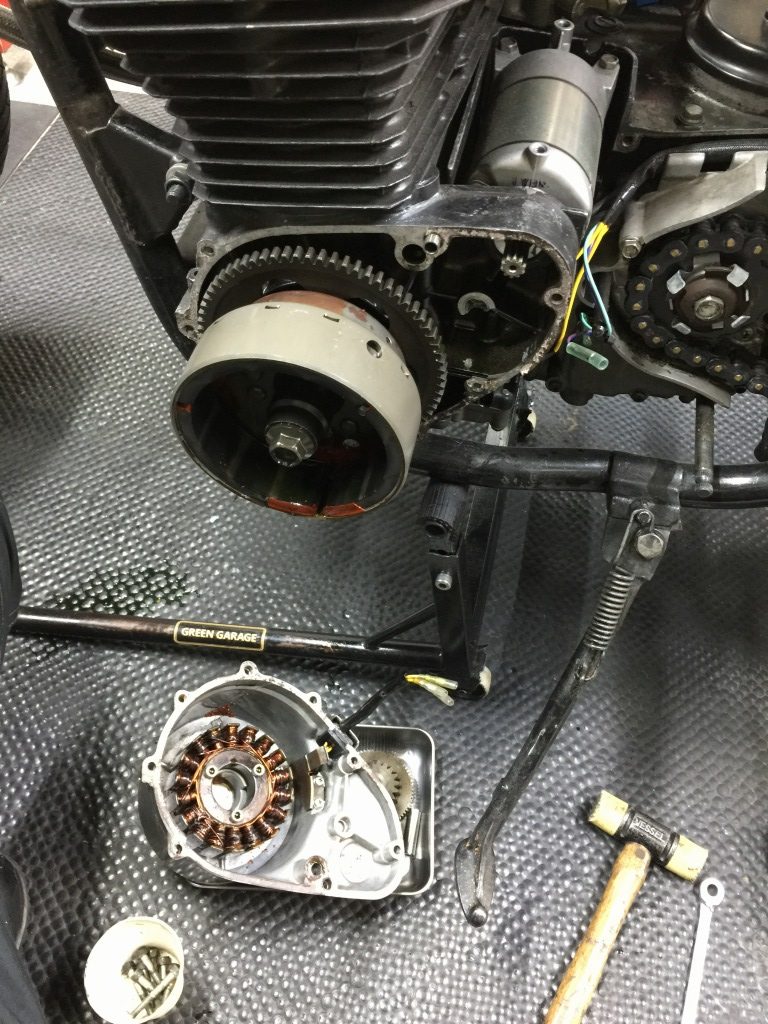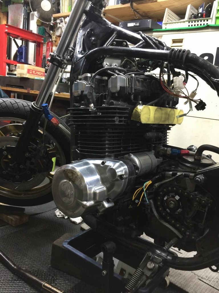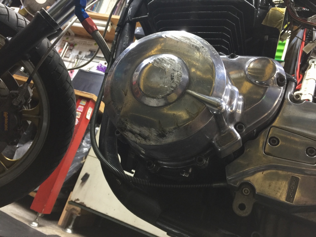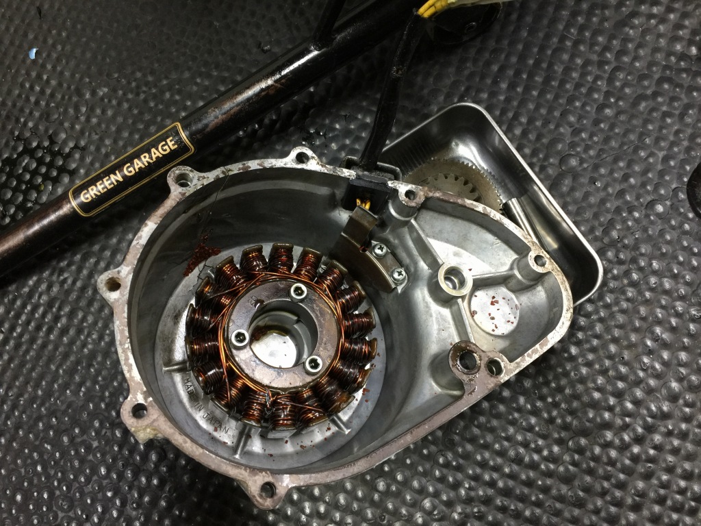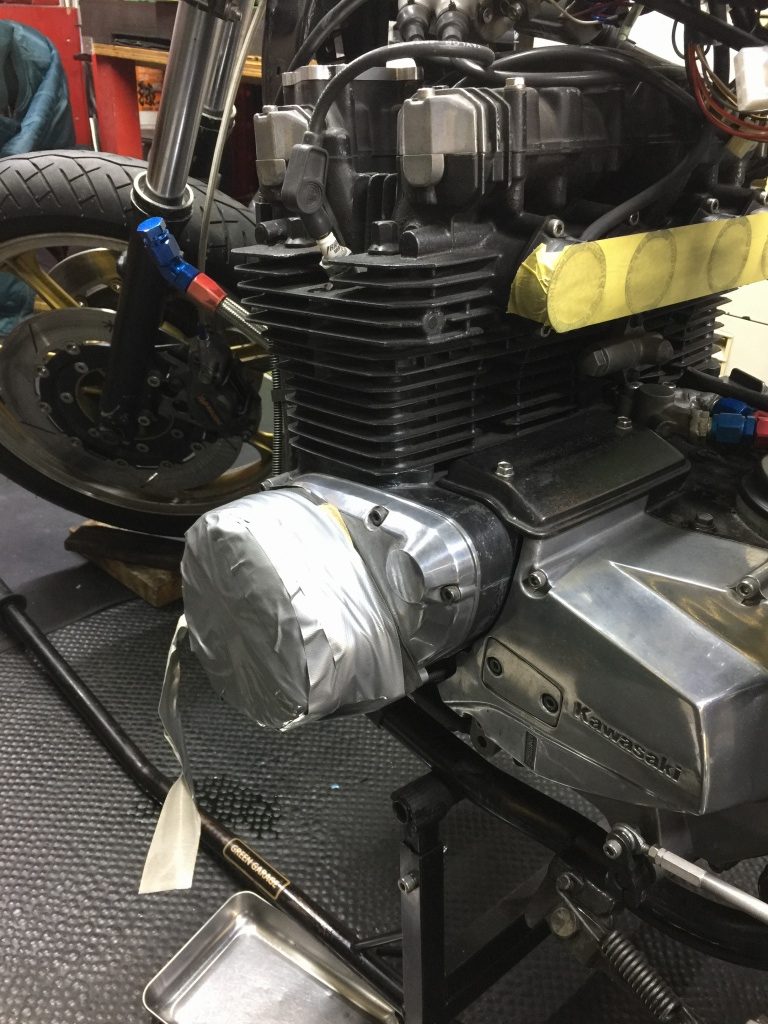 ジェネレーターカバーはオイル漏れのためテーピングされています。