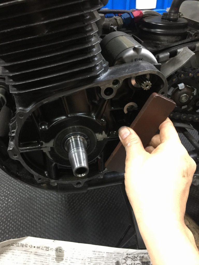 取り付け面はガスケットを剥がし、オイルストーンで面出ししておきます。