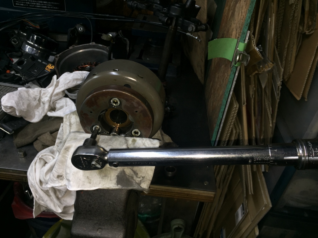 スタータークラッチは、締め付けトルクを確認します。少し緩めでした。