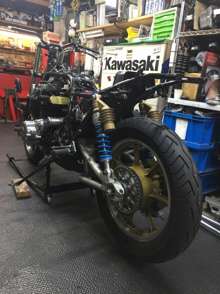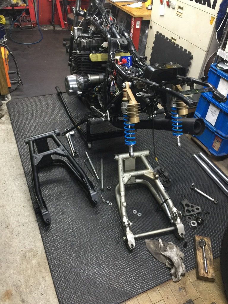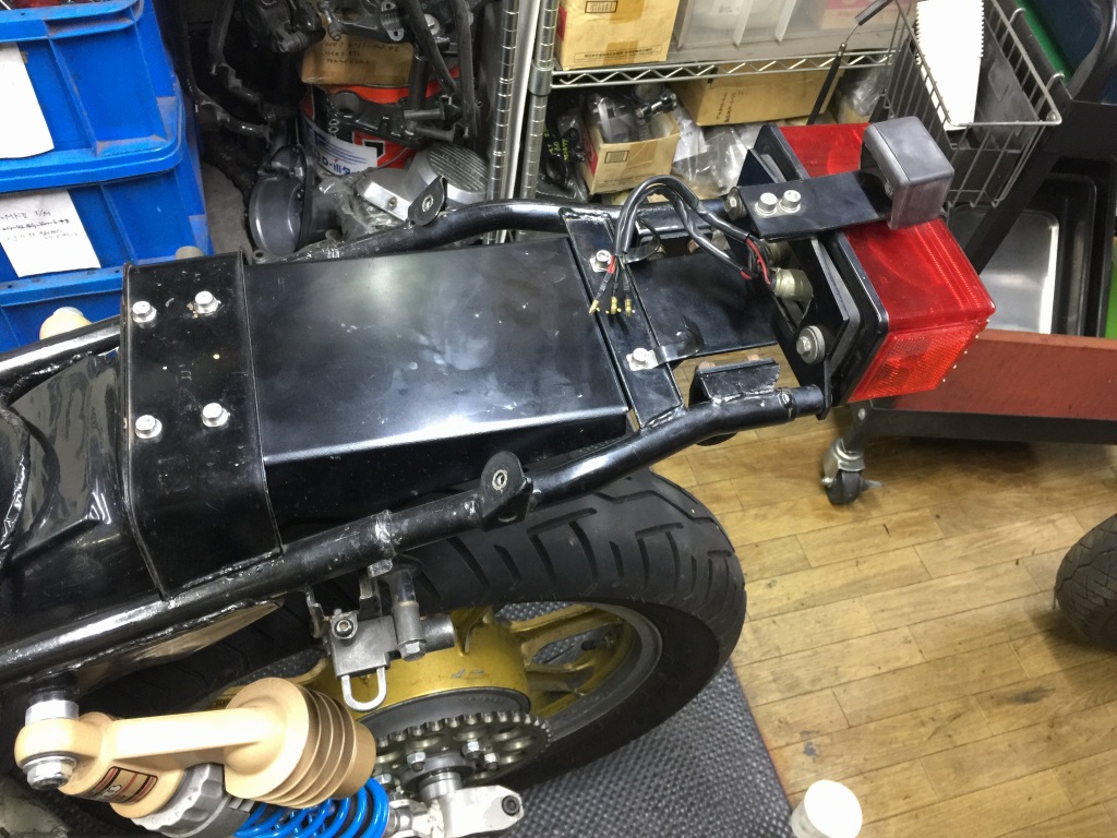 外注塗装する間、代わりに別のスイングアームを取り付けます。