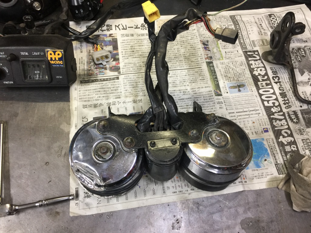 メーターは大きく破損しているので、分解して使えるところだけ取り出します。
