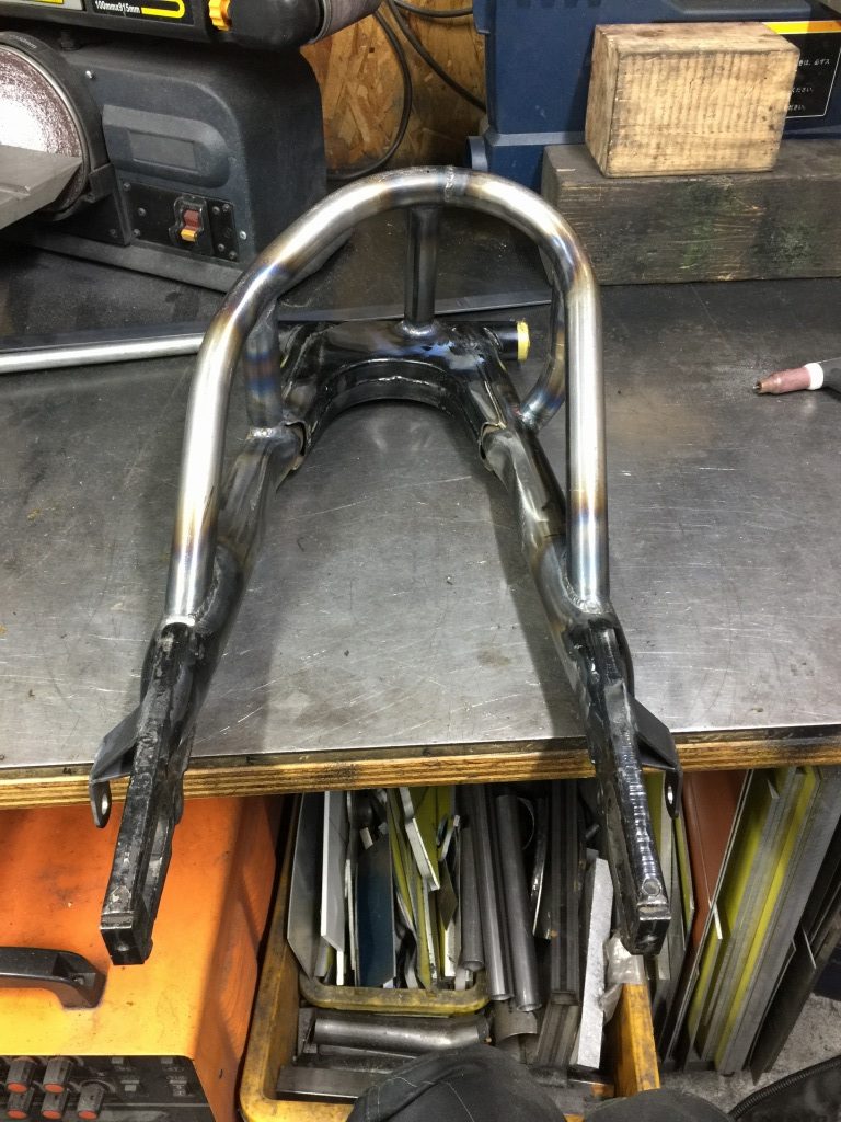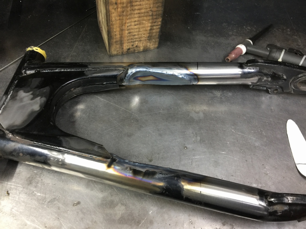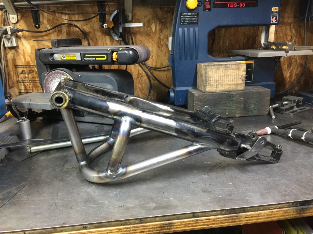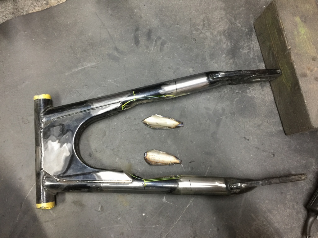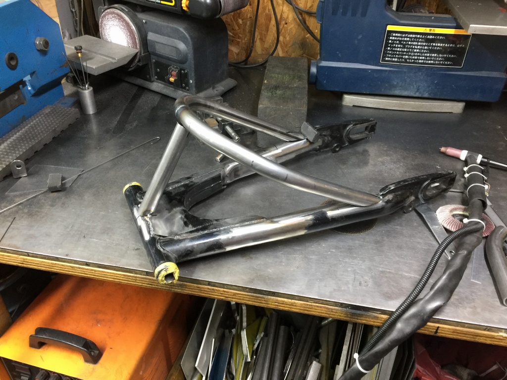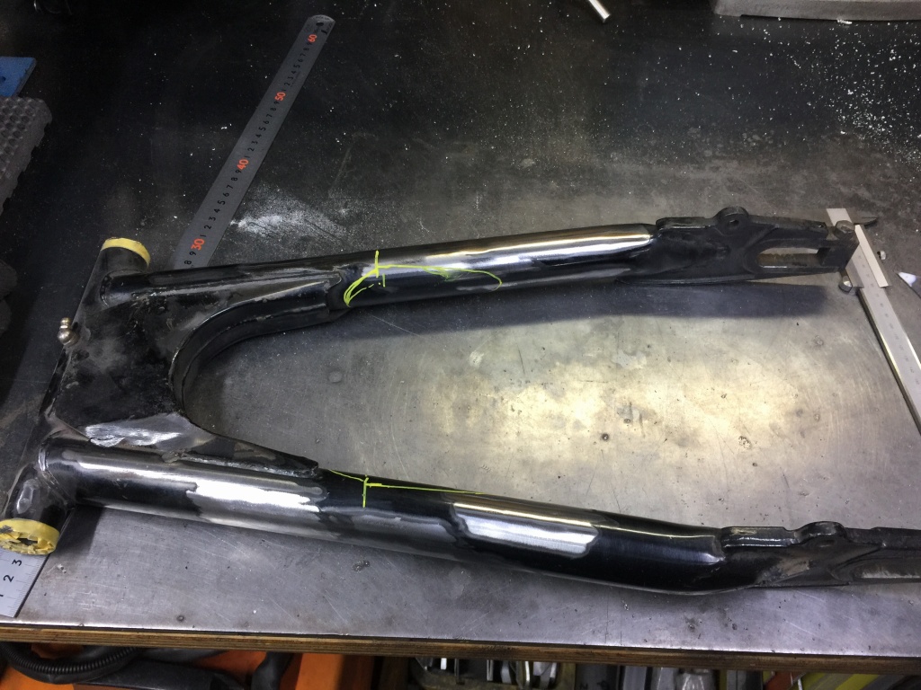 先ずは、ドナーのノーマルスイングアームから、不要なステーを削除します。