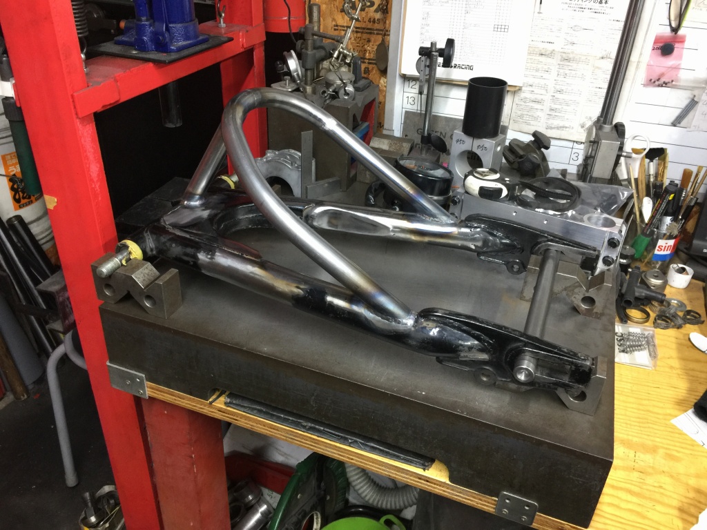 スイングアームは、アルミ角タイプからノーマル改のワークスタイプに変更します。