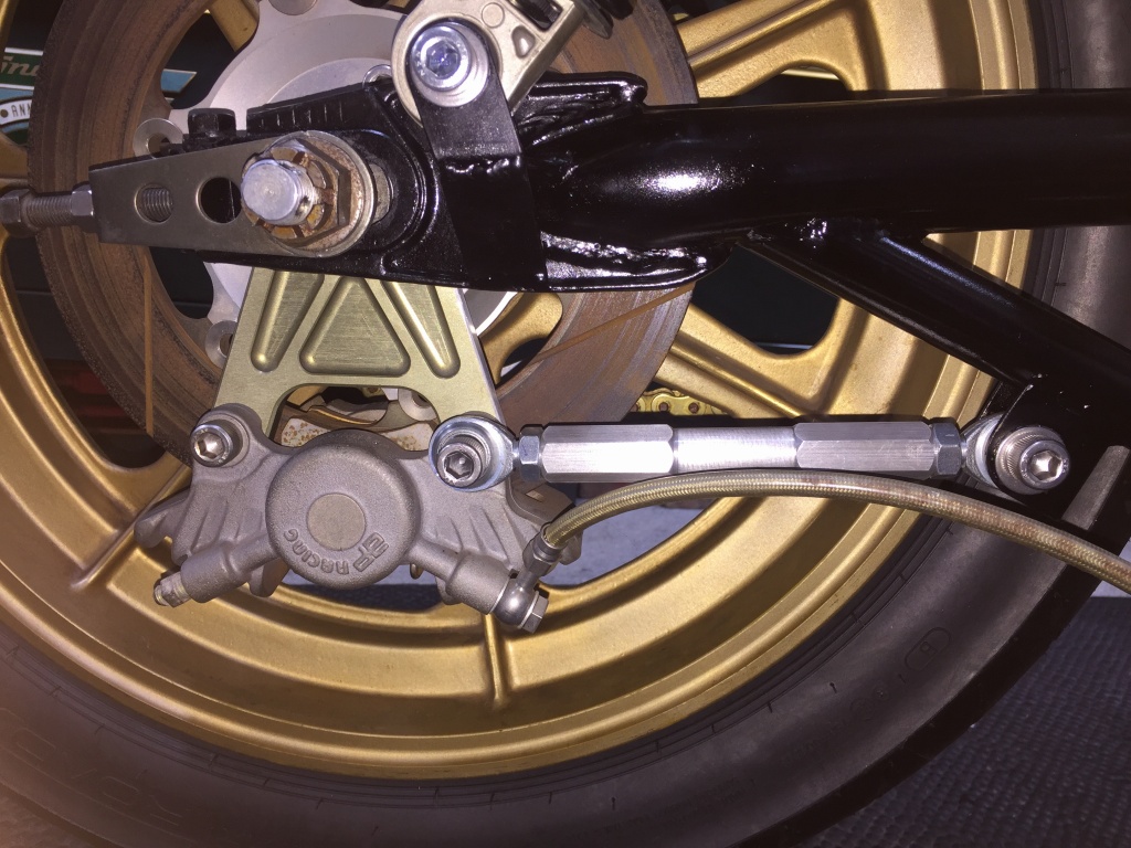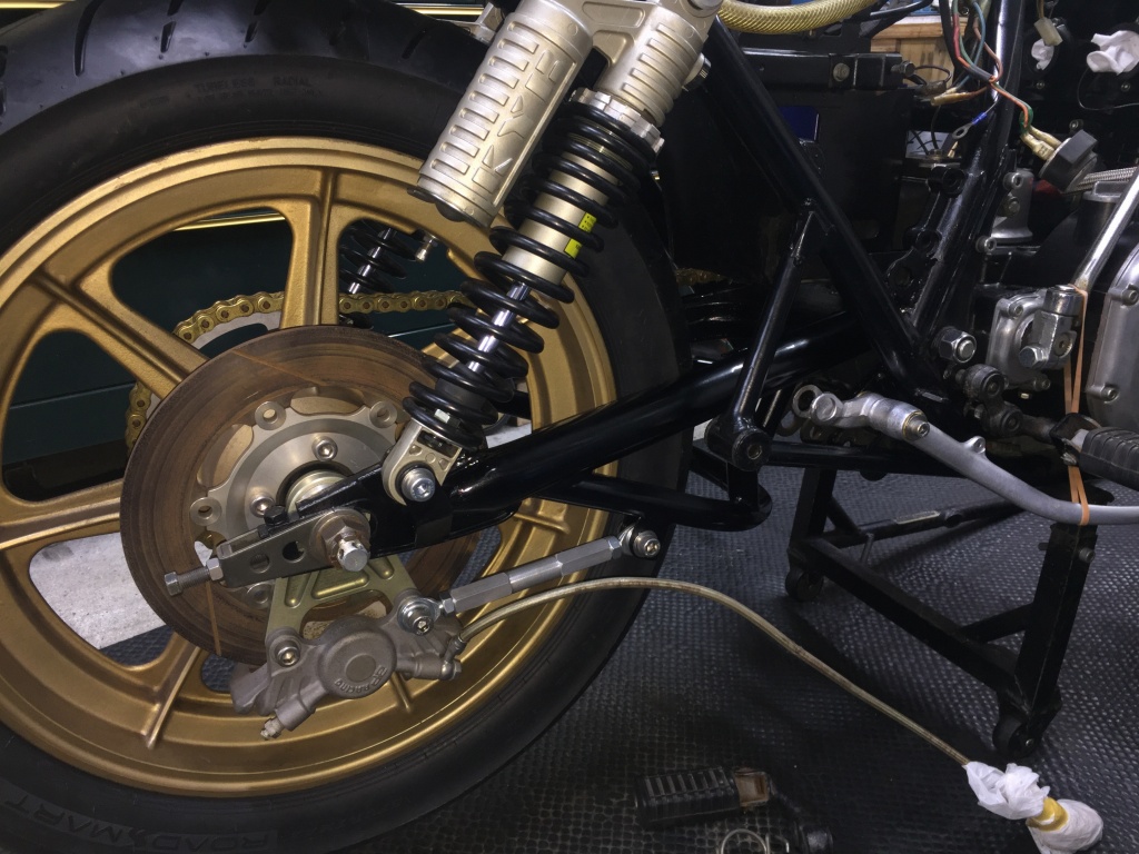 今回、ノーマルスイングアームをベースとしたワークスタイプの補強品なので長さはノーマルです。これで本来の旋回性が取り戻せるでしょう。