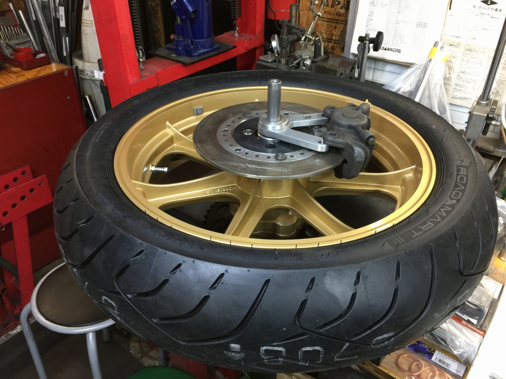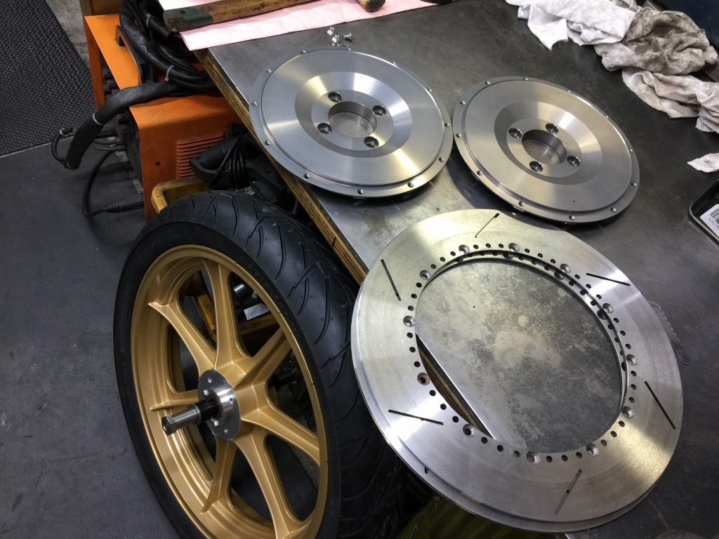 リヤローターのアライメントを確認するため、ホイールを外して合わせてみます。
