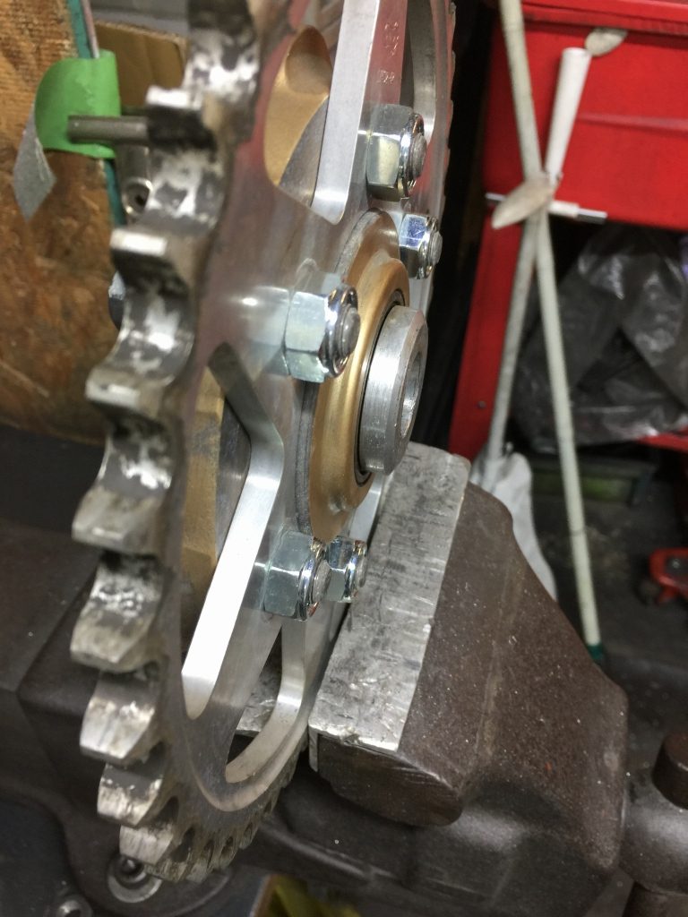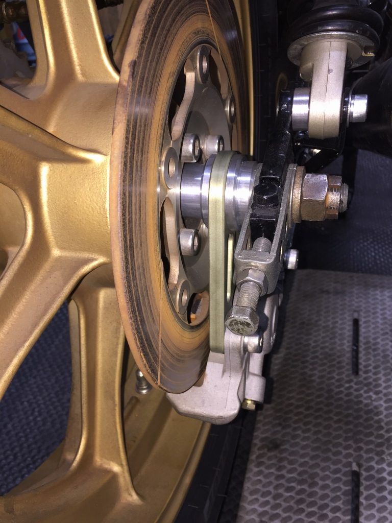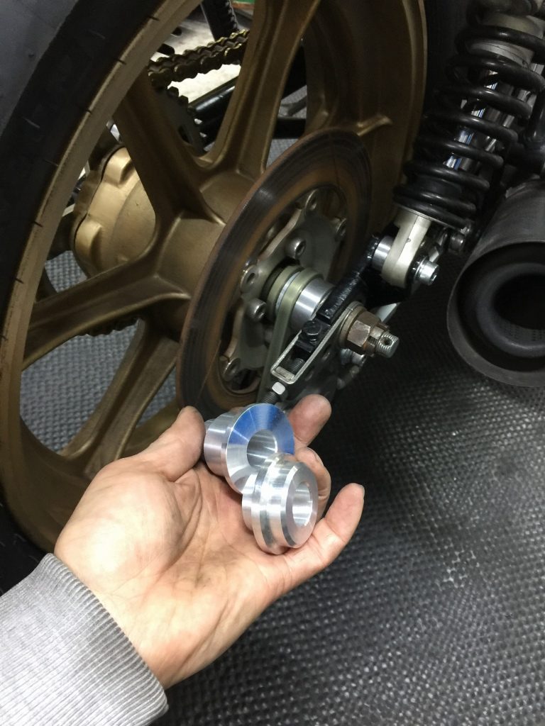ガレージに戻り、完成してきたリヤアクスルのカラーを取り付けます。