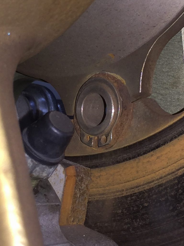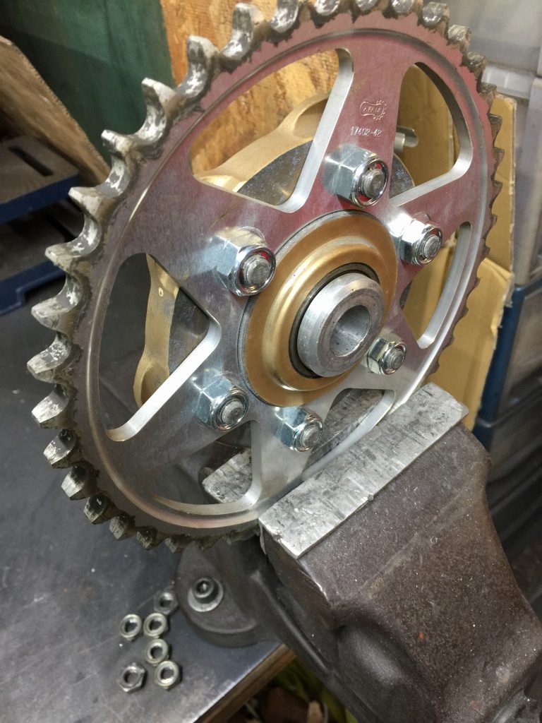 リヤスプロケのナットは薄型が使われていたので通常の高さのナットに交換します。