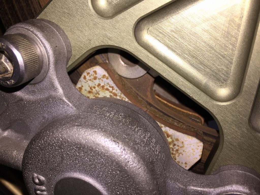 パッドを確認すると、内外ともに、干渉した痕があります。