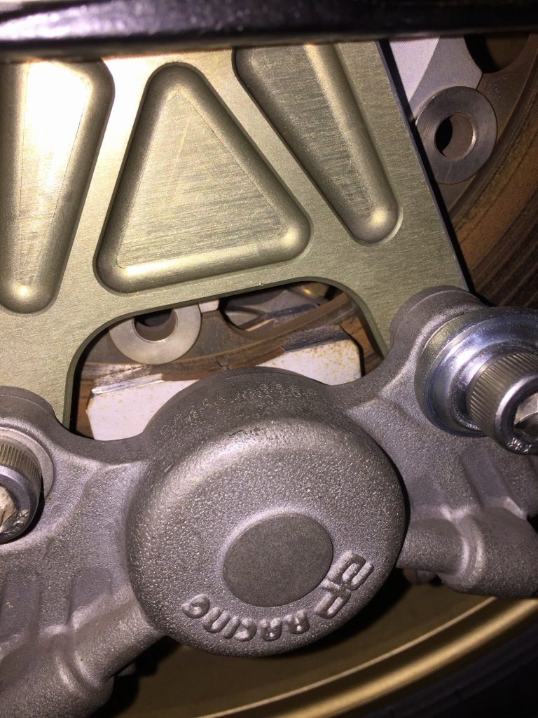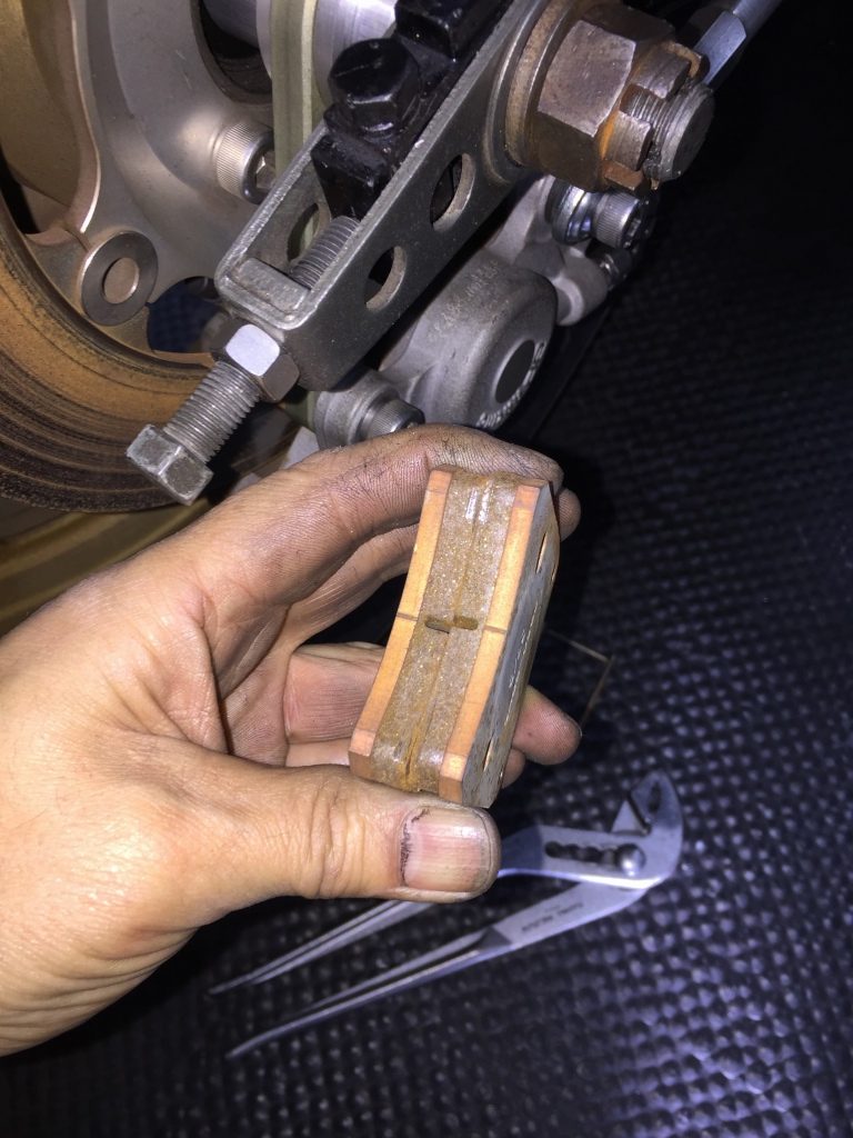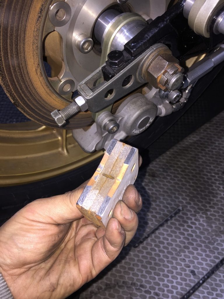 パッドの内径側を3ミリほど削って逃げを作ります。