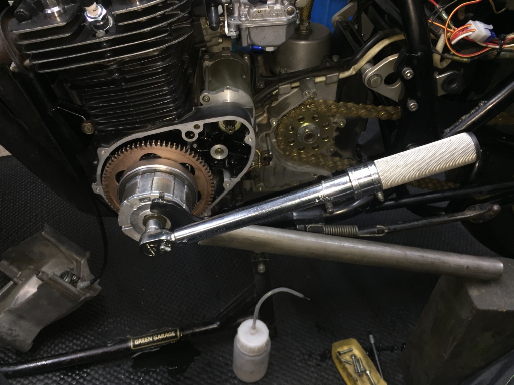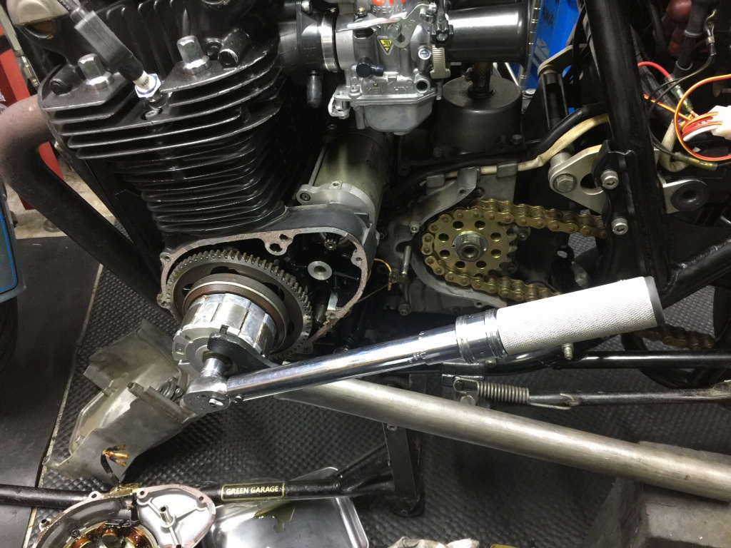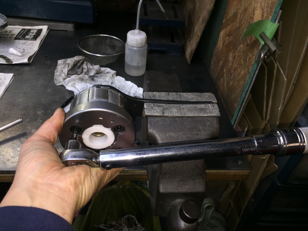 分解前に、ローターの締め付けトルクを確認します。問題無いようです。