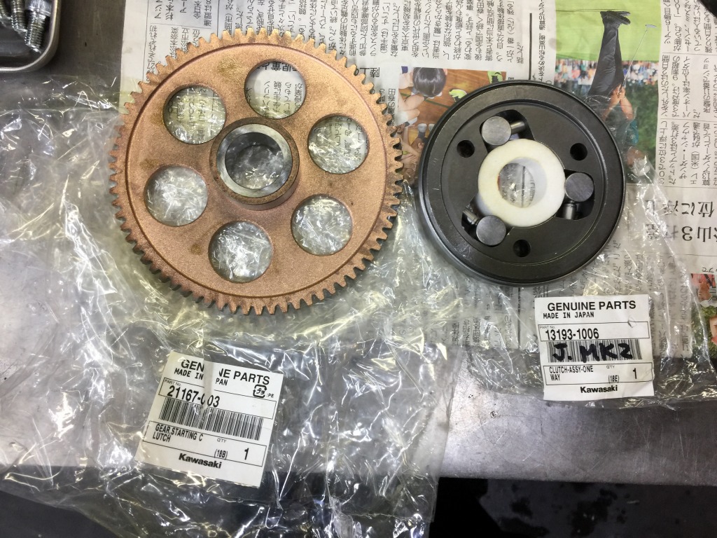 スタータークラッチとギヤは傷んでいたので新品交換します。