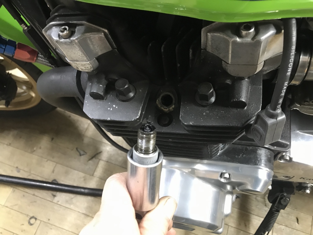 ガレージに戻りプラグを点検します。