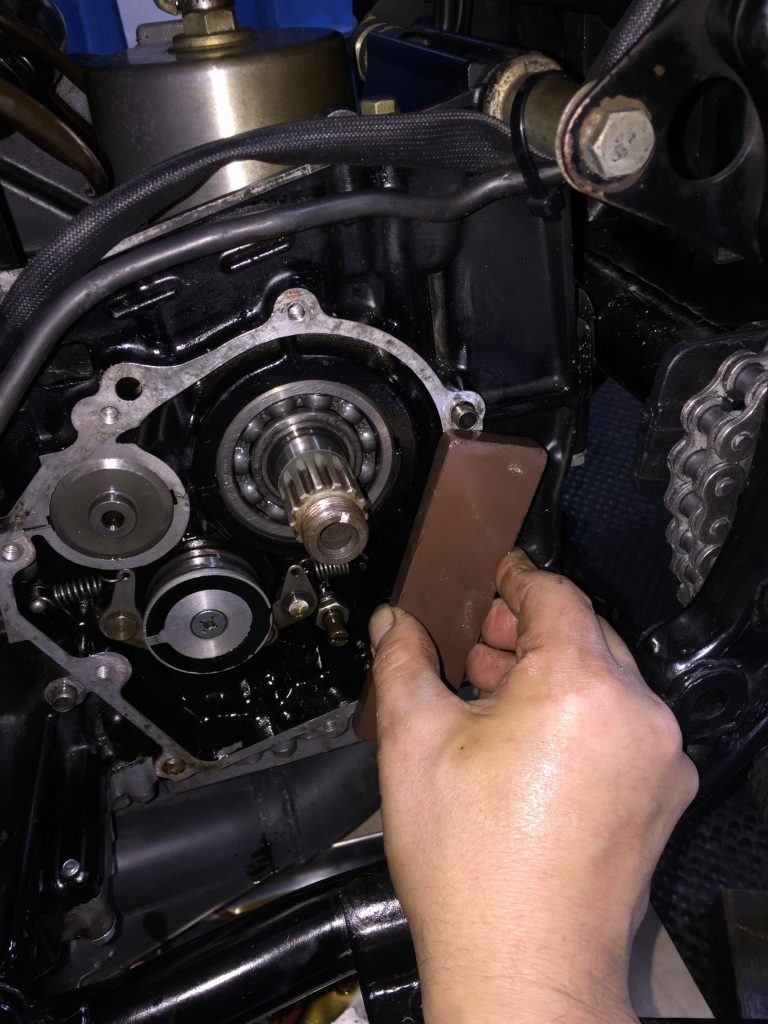 ガスケットを剥がし、オイルストーンで面出しします。