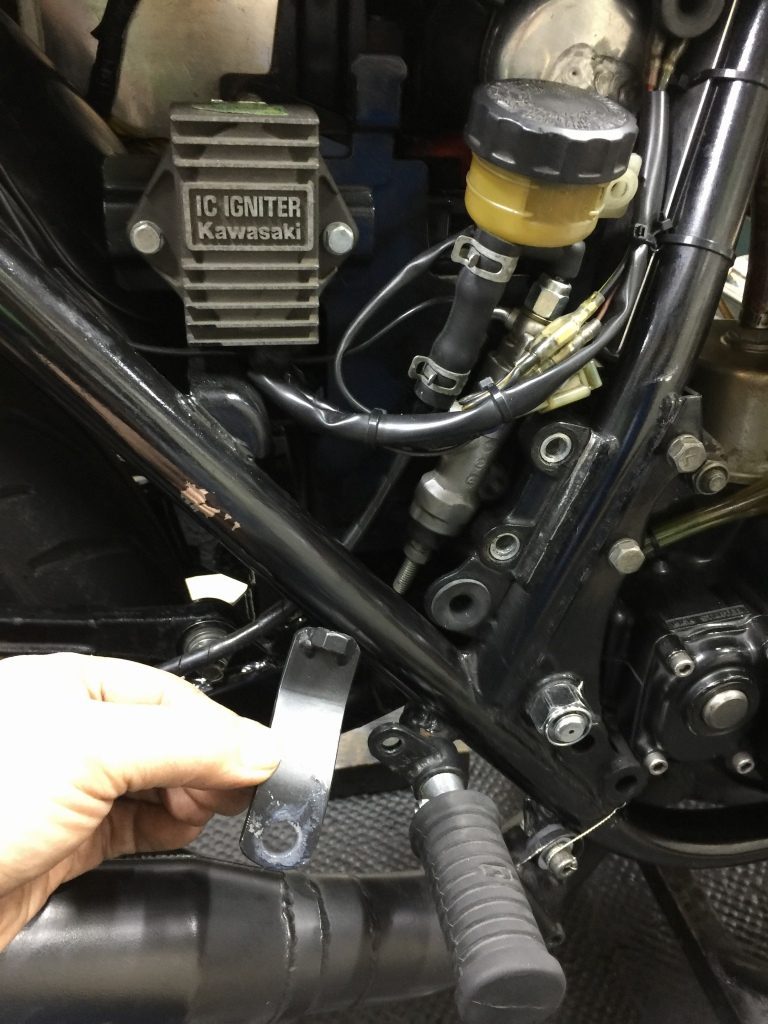 ミッションカバーを外すので車体を右に傾けます。