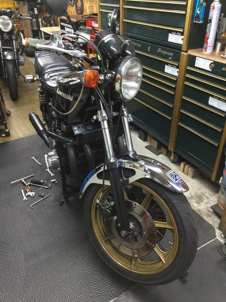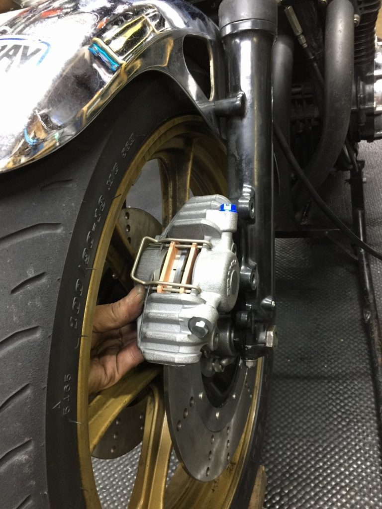 今回は、フロントブレーキのカスタムと、エンジンからのオイル漏れ修理のご依頼です。