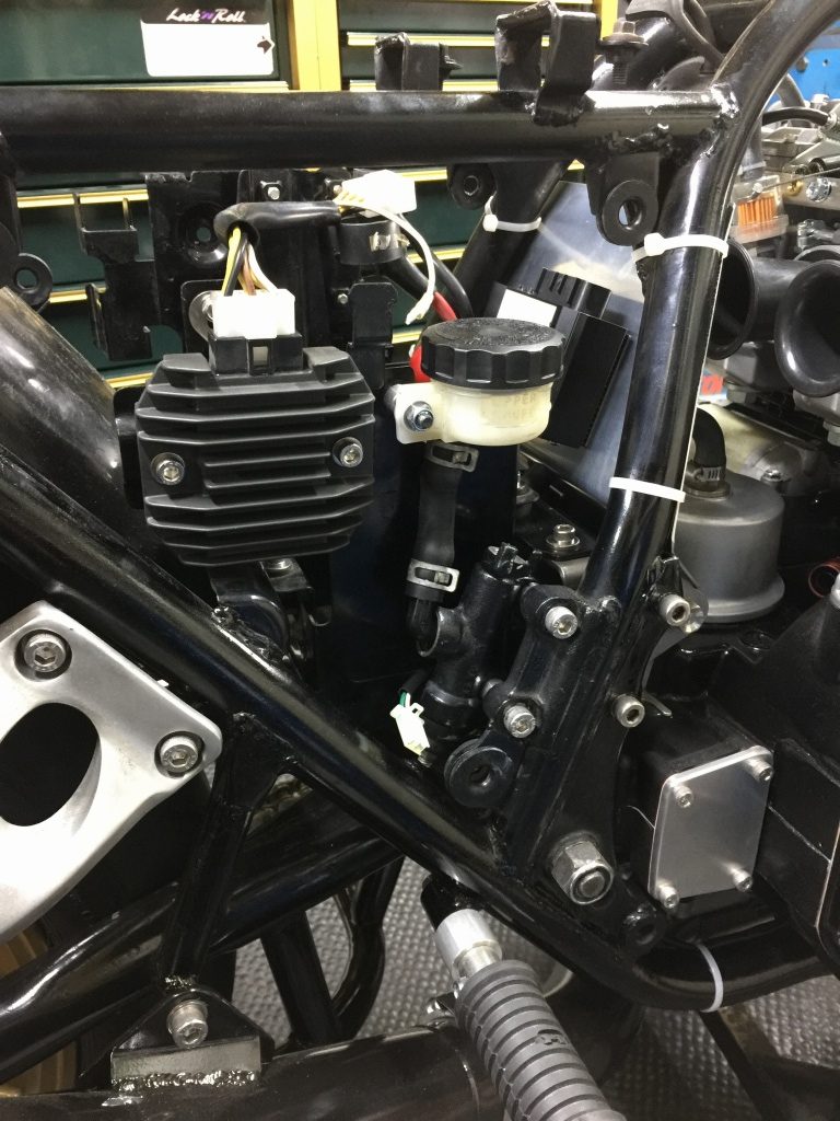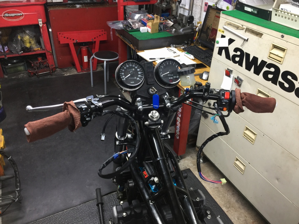 ハンドル周りはこんな感じで、フロントカウルは有り無しどちらでも走れるようにする予定。