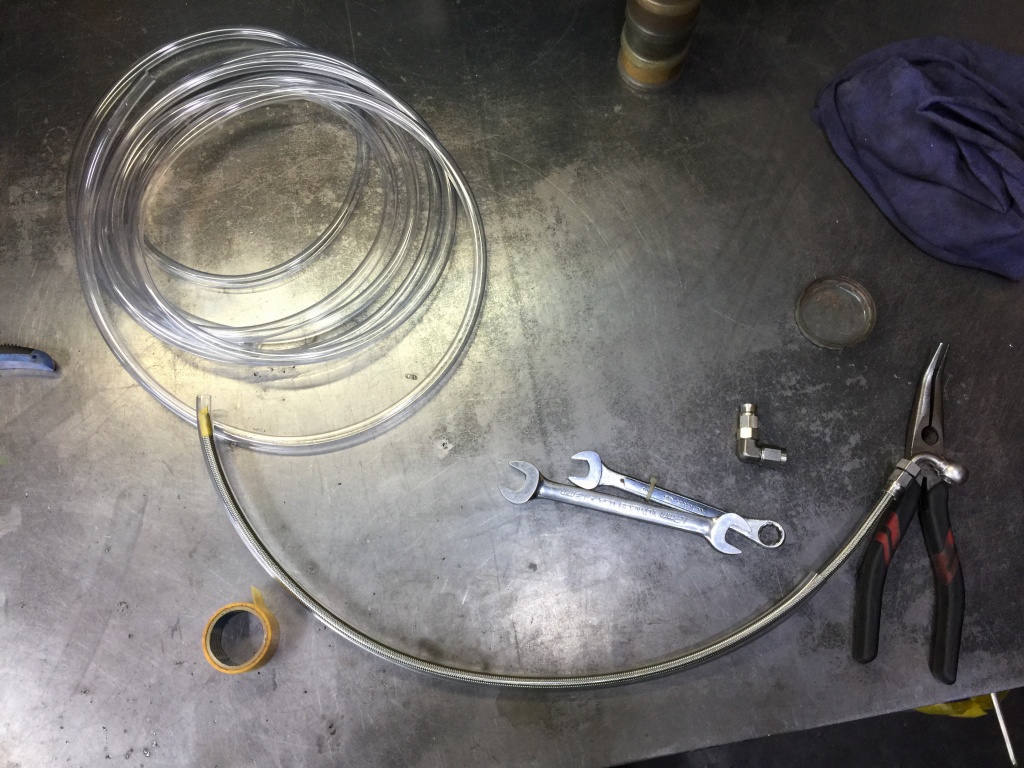 ブレーキホースは現車合わせで長さを決めるので、先ず片側のバンジョーをホースに取り付けます。