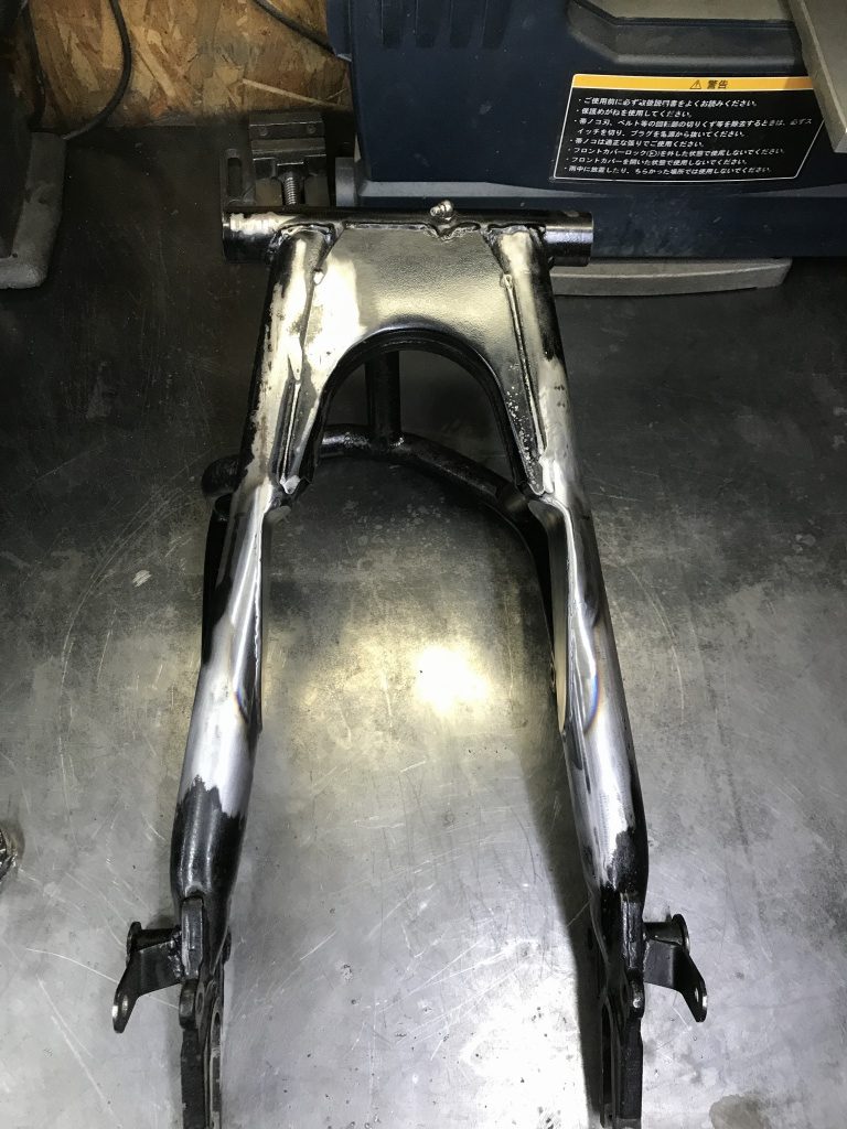 そして、今回スイングアーム単体を送っていただき、更なるワイド化加工を施工して送り返しました。