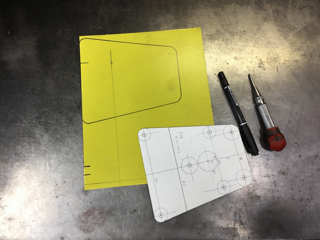 次に、型紙に合わせて3ミリのジュラルミン板から切り出します。