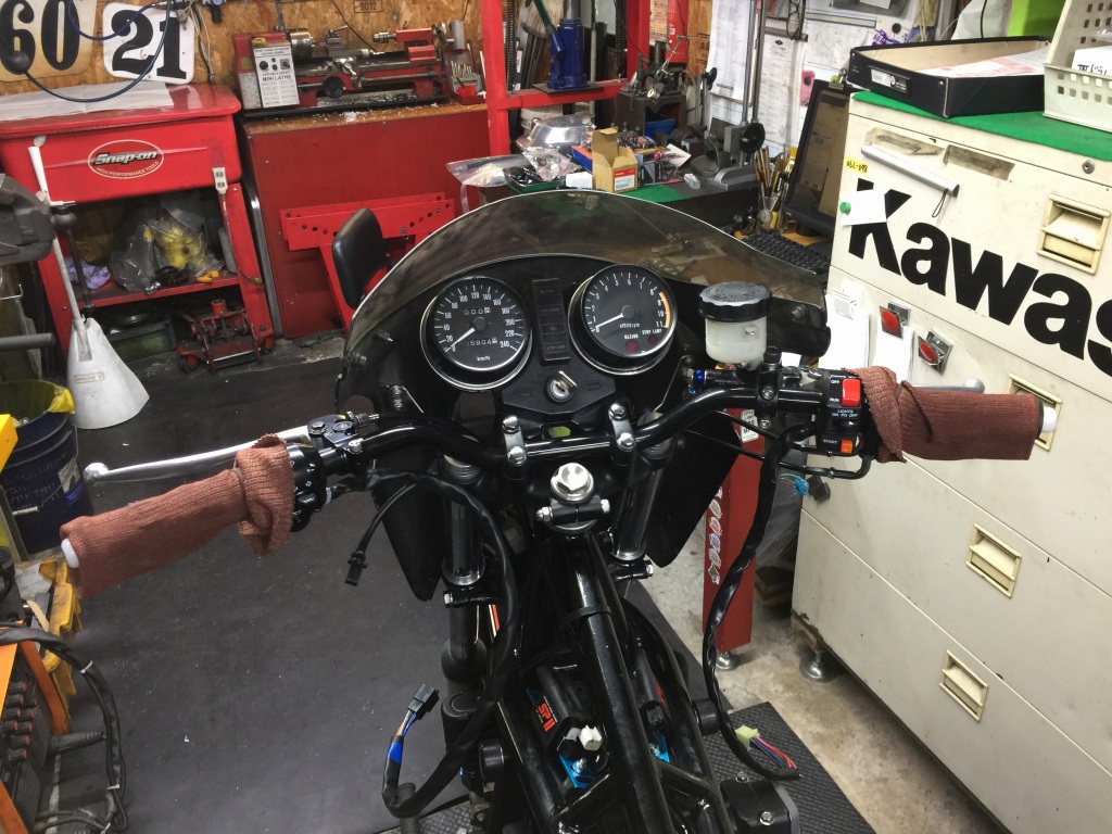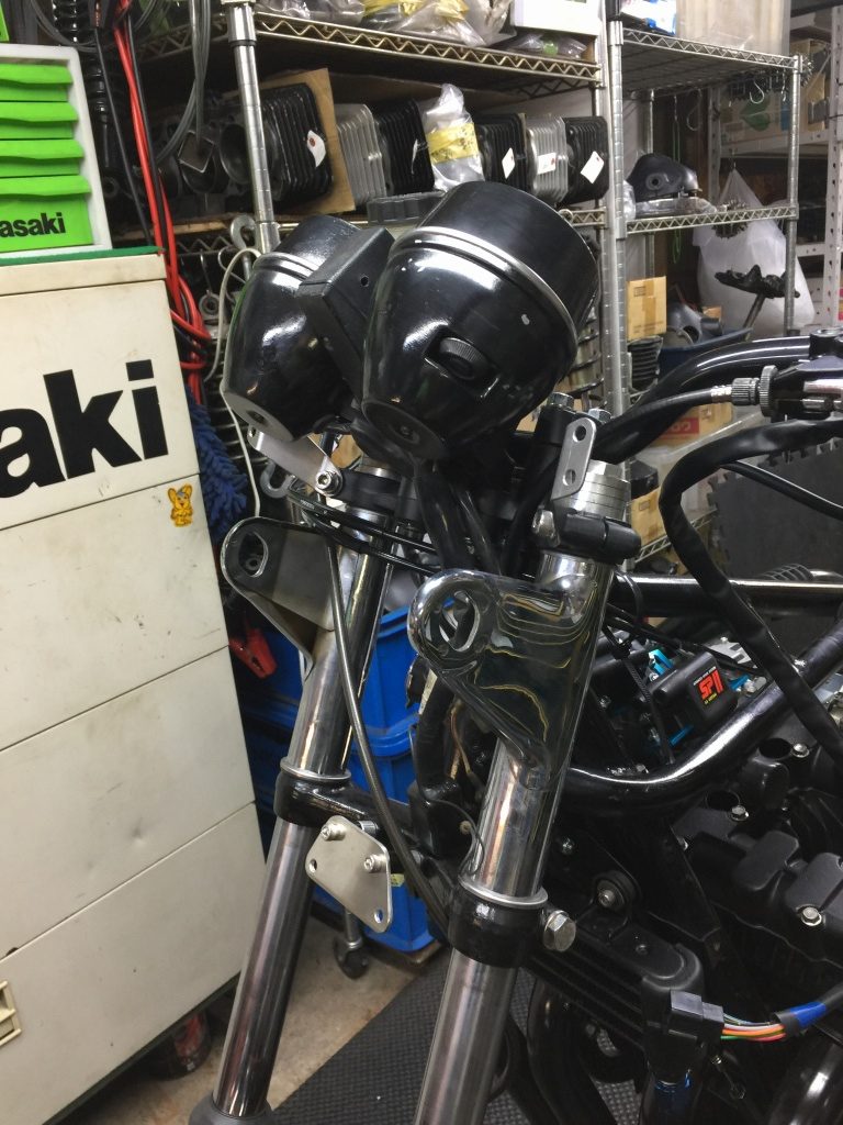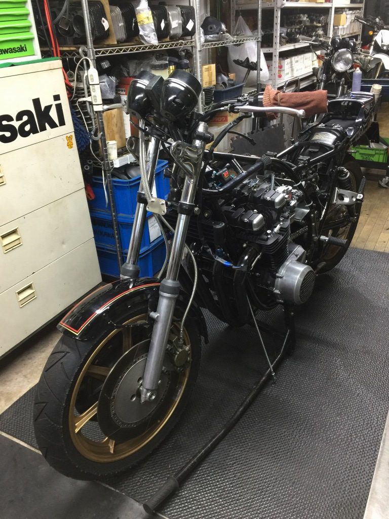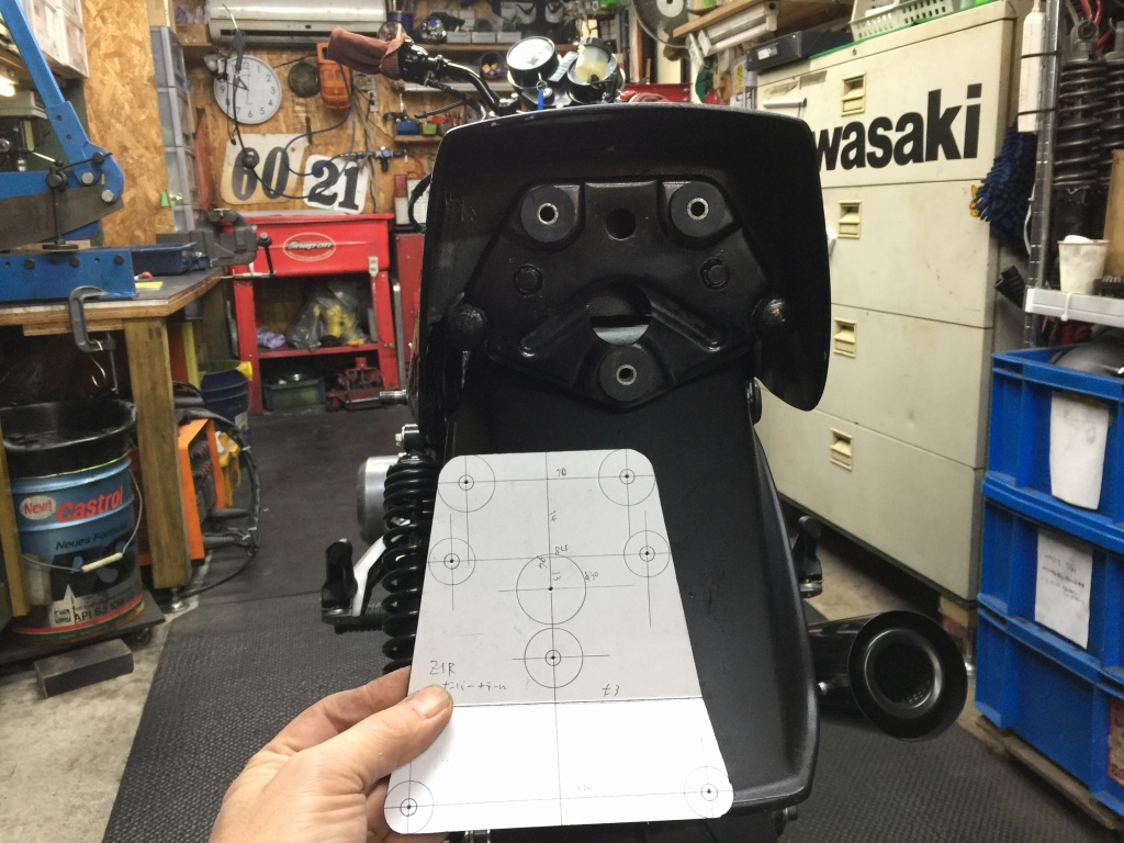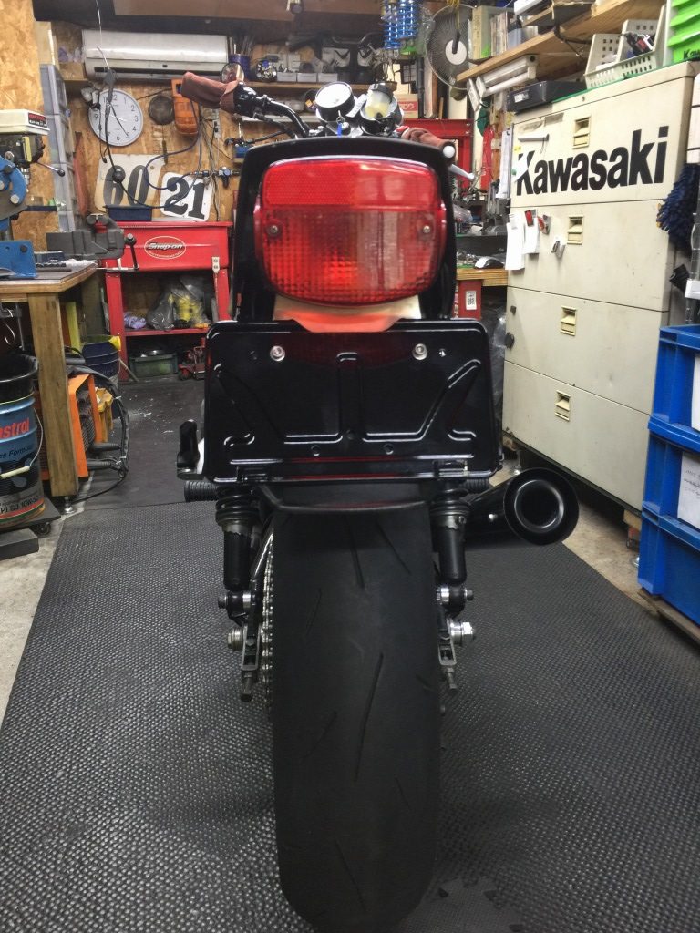 ナンバーブラケットも当時風のカワサキ純正スチール製を合わせます。