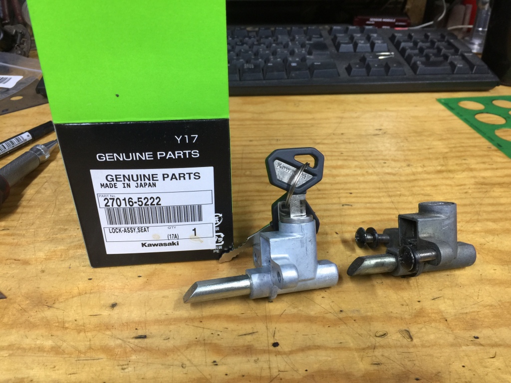 続いて本題のシートロックです。Z1R用としてバリオスの純正シートロックが流用できるのはZ1R界では定番のよう。プランジャーの長さが違います。