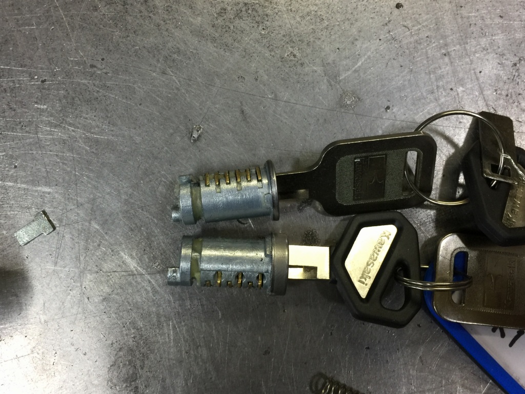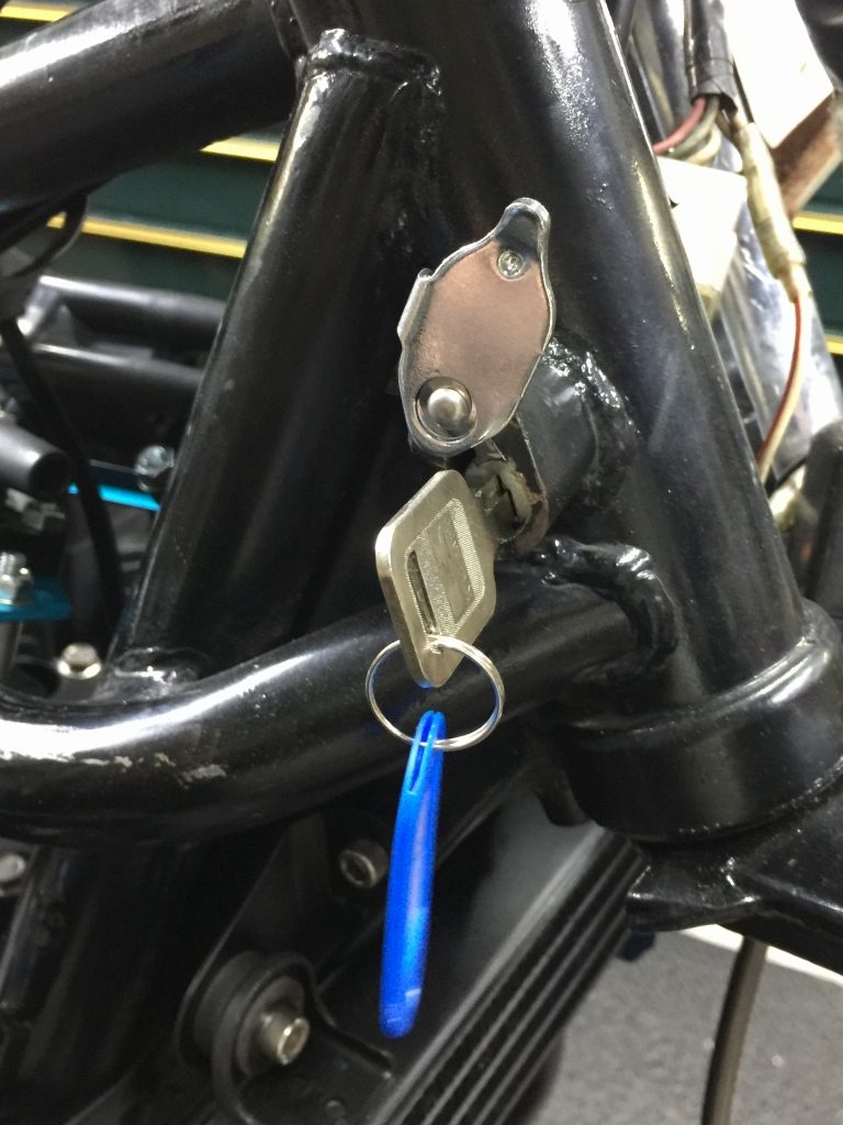 これで、イグニッションスイッチ、ハンドルロック、シートロックの3点が新品の同一キーとなりました。