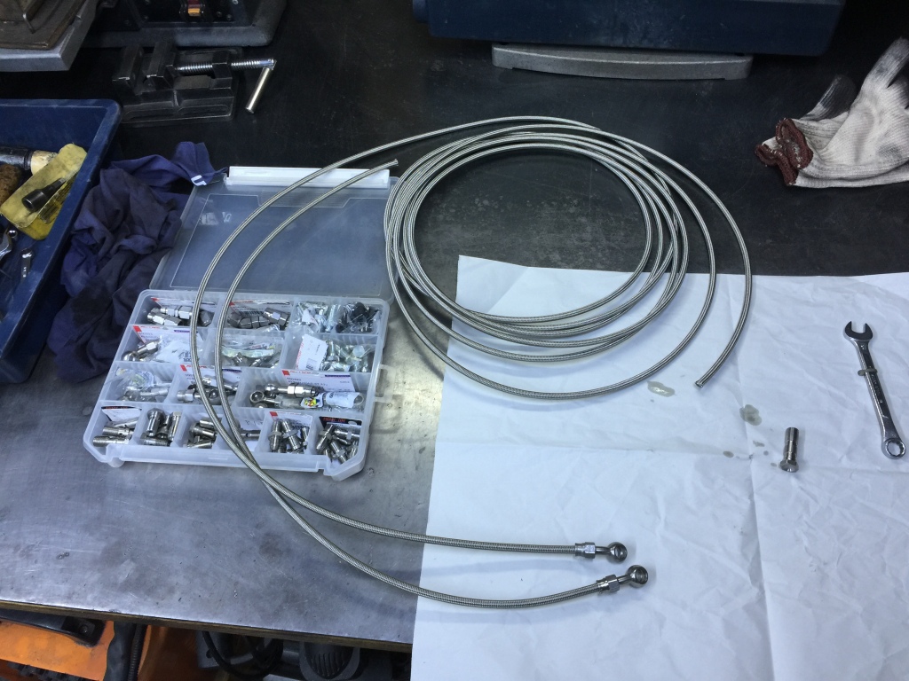 続いて、フロントブレーキホースの製作です。現車合わせで長さを決めます。