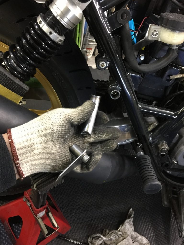 フレーム側は使わなくなったタンデムステップのマウントネジを利用します。