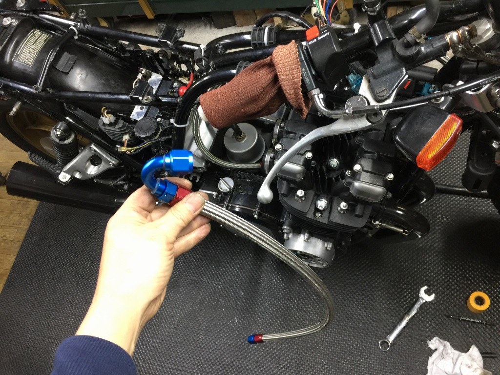 続いて、オイルクーラーのフィッティングが入荷したのでホースを製作します。
