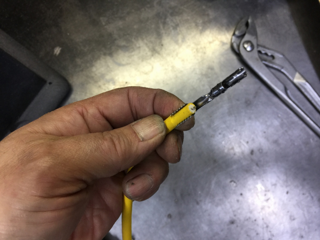 心線を出したら、SP2コイル用ターミナルに合わせてコードの外径を削って細くします。