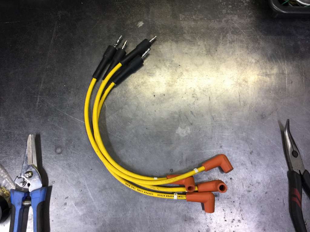 続いてプラグコードを製作します。オレンジキャップのシリコンコードを使い、現車合わせで長さを決めてカットします。