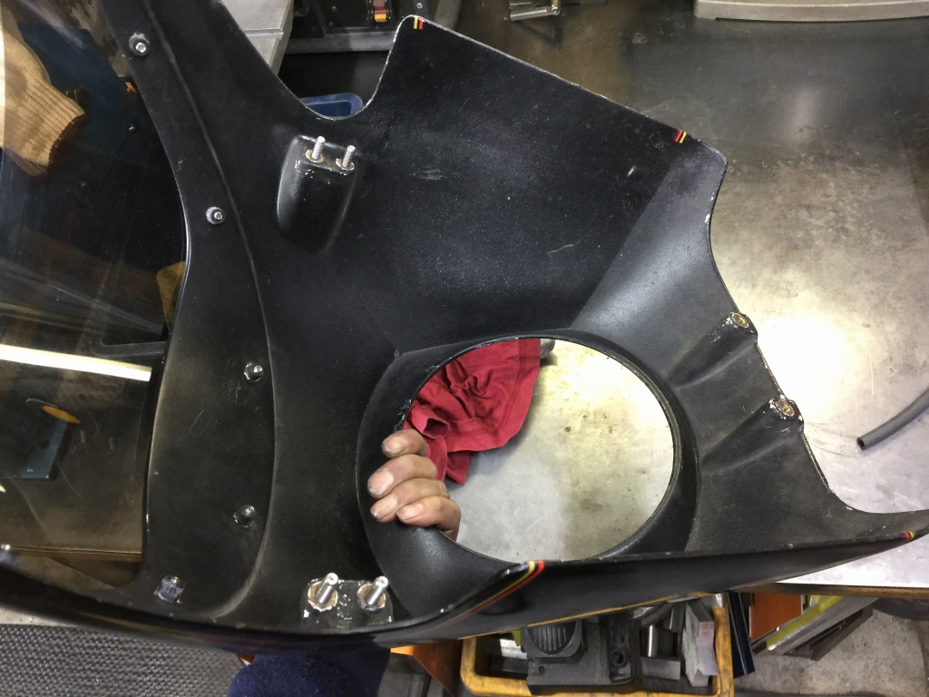 フロントカウルはアッパーマウントにスタッドを取り付けました。