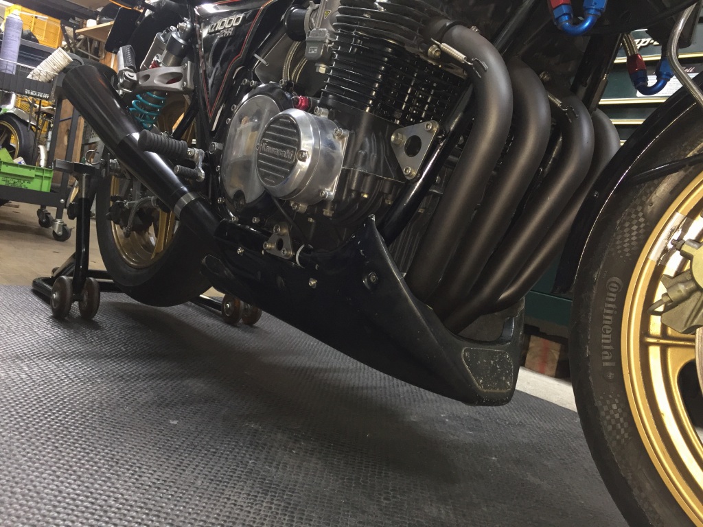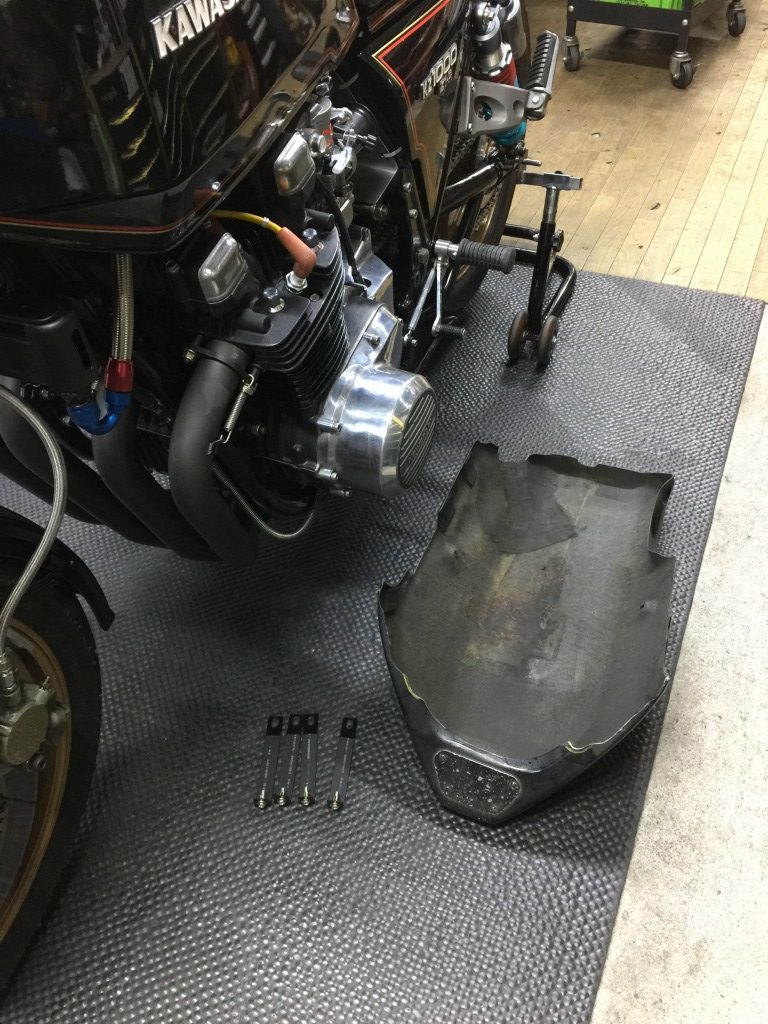 筑波のスポーツ走行はAクラスを走る予定。装着が条件のアンダーカウルを取り付けます。使用するのは以前Jレーサーに使っていた汎用品。