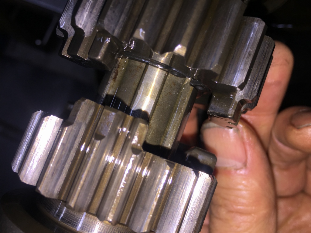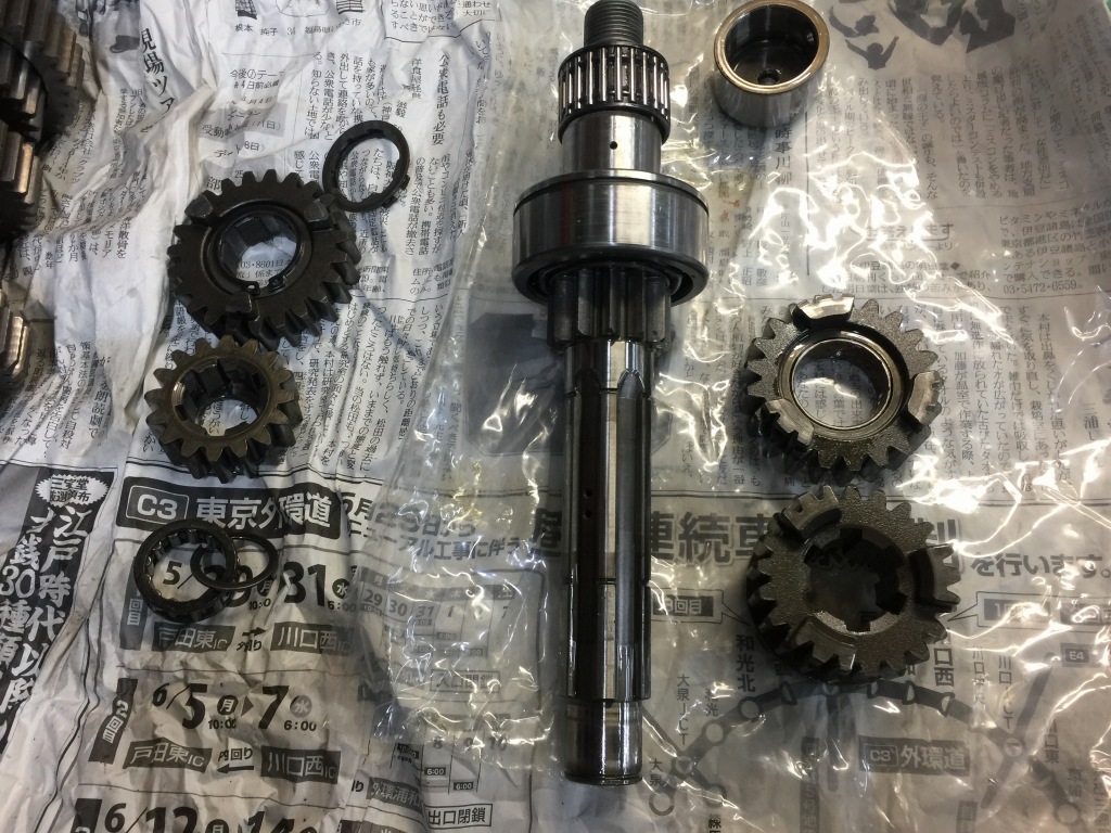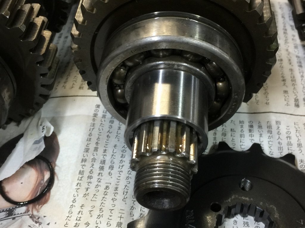 ミッションは4速がギヤ抜けすることがあるそうです。4速をつかさどるのはこちらのインプットシャフト側のギヤ二つです。