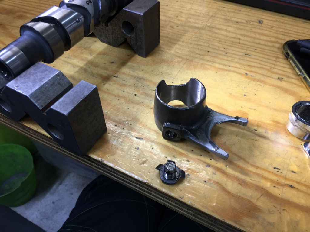 4速5速用のシフトフォークです。ガイドピンの摩耗はどうでしょう。