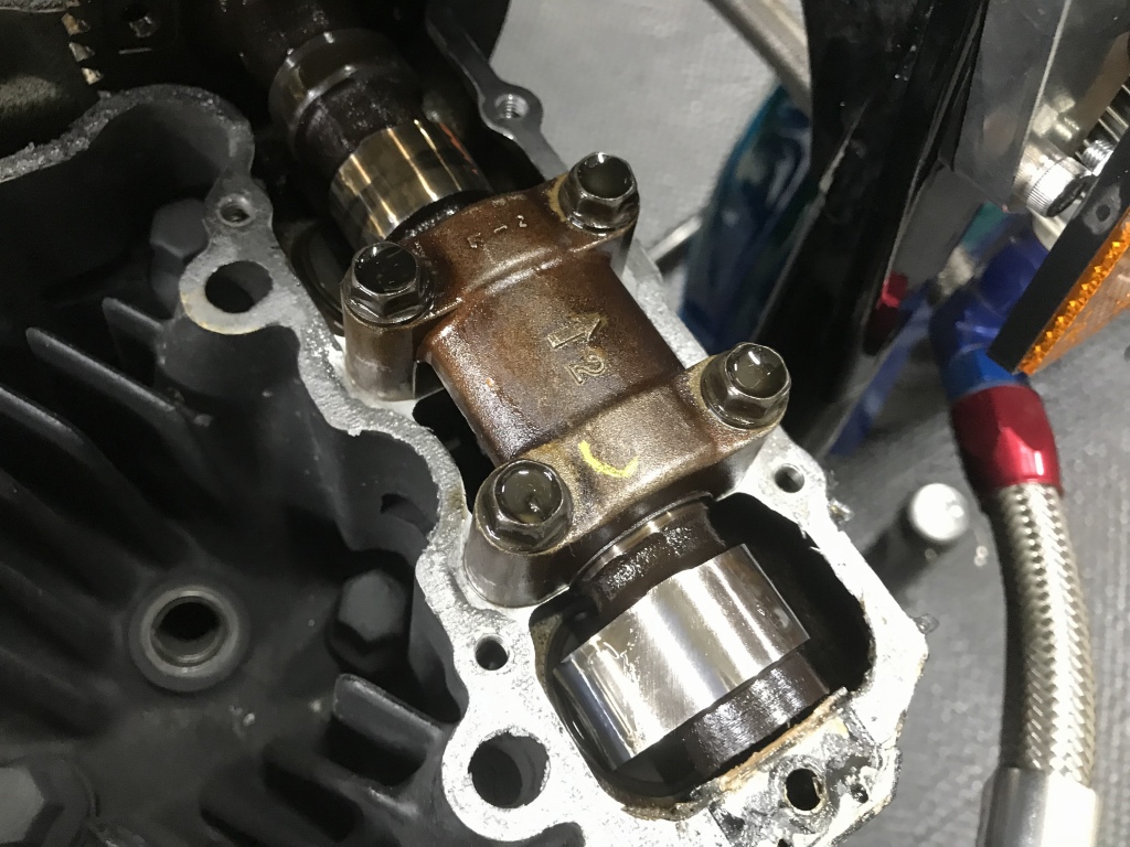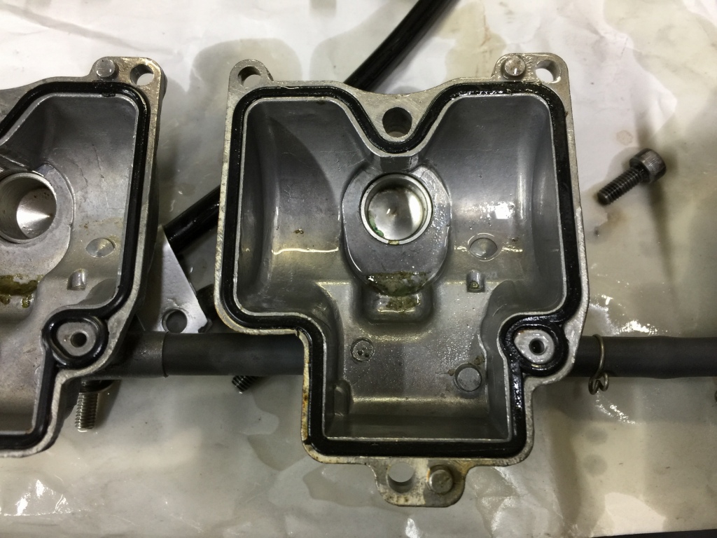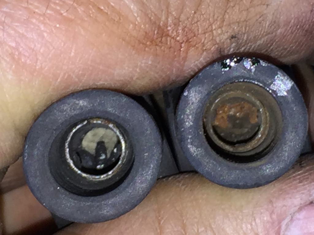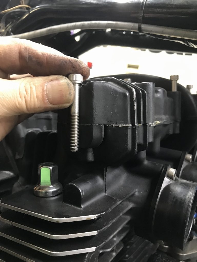 ヘッドカバーのボルトは端の4本は長いのですが、全数同じ長さが使われていました。ヘッドのネジ山を痛めるのでボルトは必ず純正の長さで。