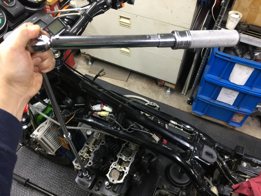 ヘッドのトルクを確認します。4角のメッキナットはかなりトルク不足でした。