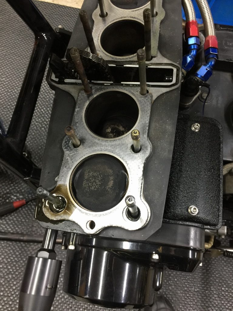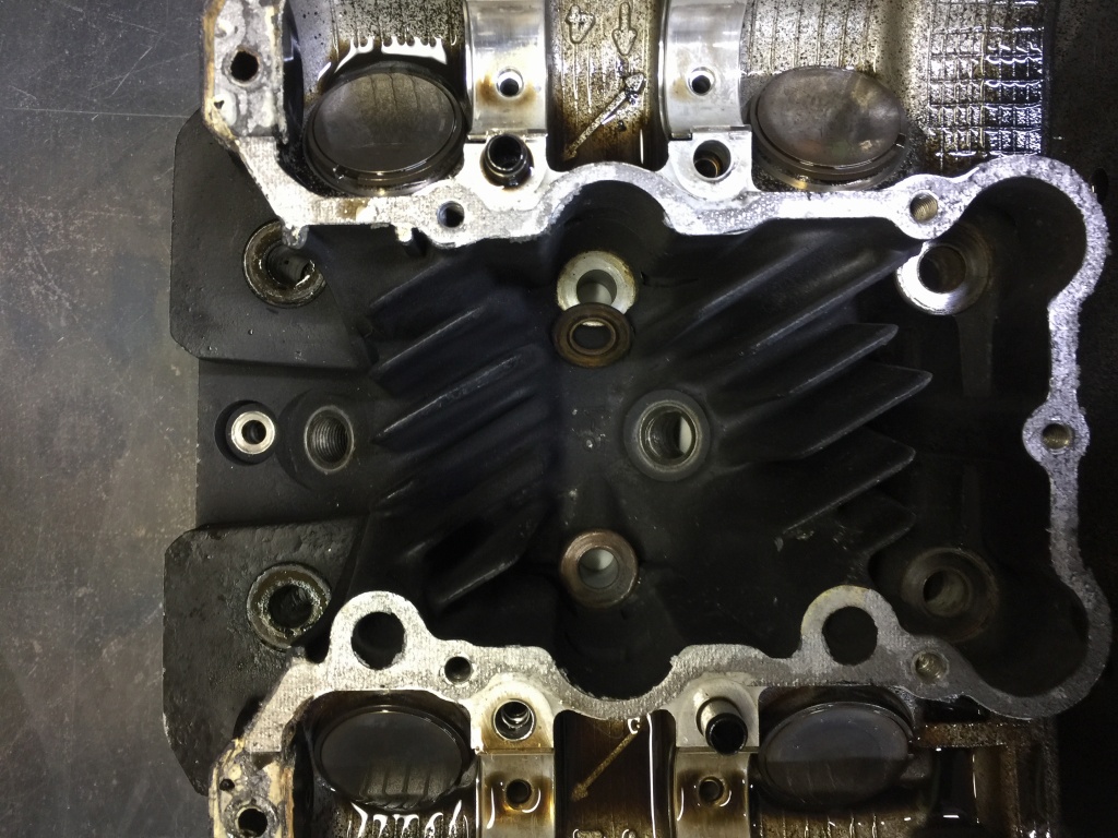 ヘッドガスケットは上下逆さまです。ピストンは純正のようですね。