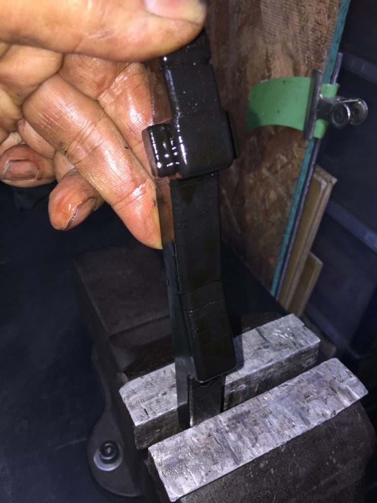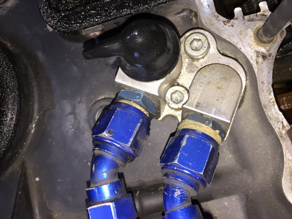 オイルフィッティングには大量のシールテープが巻かれています。漏れを強引に止めているのでしょうか。